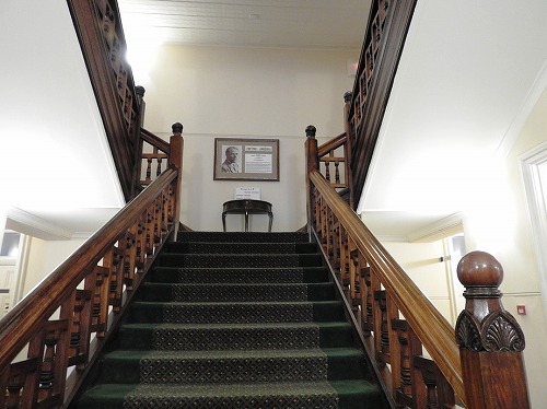 ▼正面玄関を入ると年季の入った木材と手入れの行き届いた艶(つや)のある階段が出迎えてくれます。毎日、この階段をのぼって教室へ向かいます。自然と、背筋を伸ばして歩きたくなるかも。